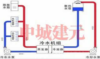 1.冷(熱)水機(jī)組的基本工作過(guò)程是:室外的制冷(熱)機(jī)組對(duì)冷(熱)媒水進(jìn)行制冷降溫(或加熱升溫),然后由水泵將降溫后的冷媒(熱)水輸送到安裝在室內(nèi)的風(fēng)機(jī)盤管機(jī)組中,由風(fēng)機(jī)盤管機(jī)組采取就地回風(fēng)的方式與室內(nèi)空氣進(jìn)行熱交換實(shí)現(xiàn)對(duì)室內(nèi)空氣處理的目的。